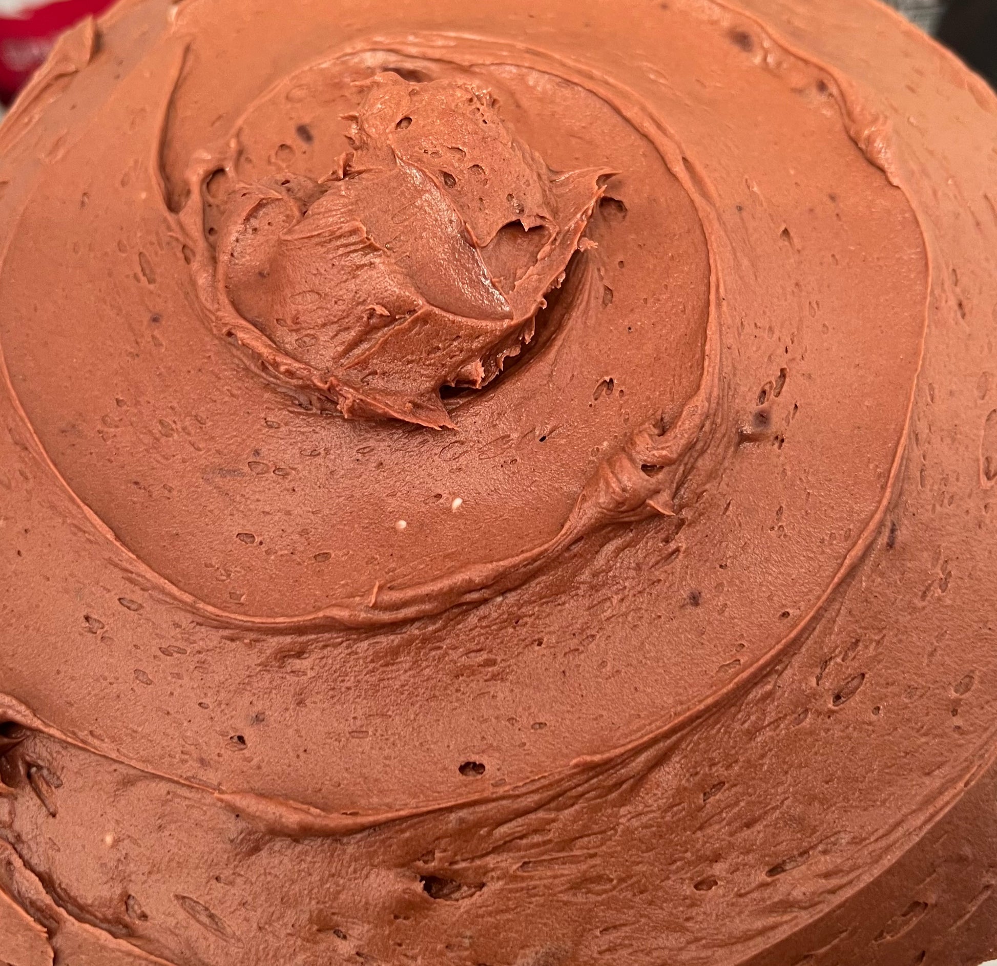 Triple layered black dutch cocoa cake layered in chocolate butter cream